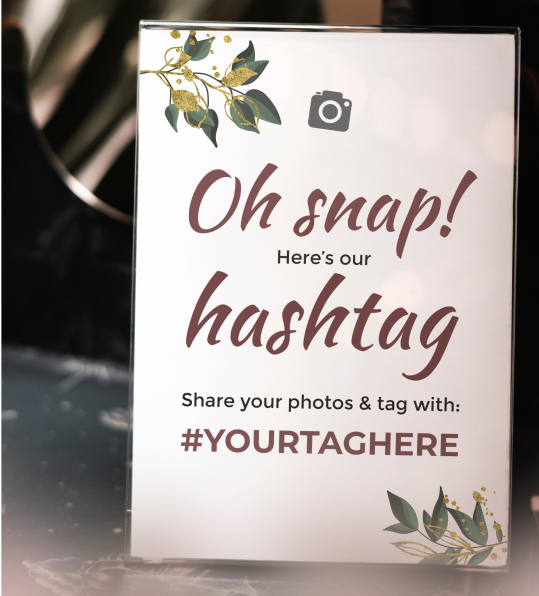 The dinner table is a pretty popular place for guests to take pictures of each other and of course of the food. To ensure that your guests use your hashtag for all these posts, make sure your hashtag is readily accessible and readable.